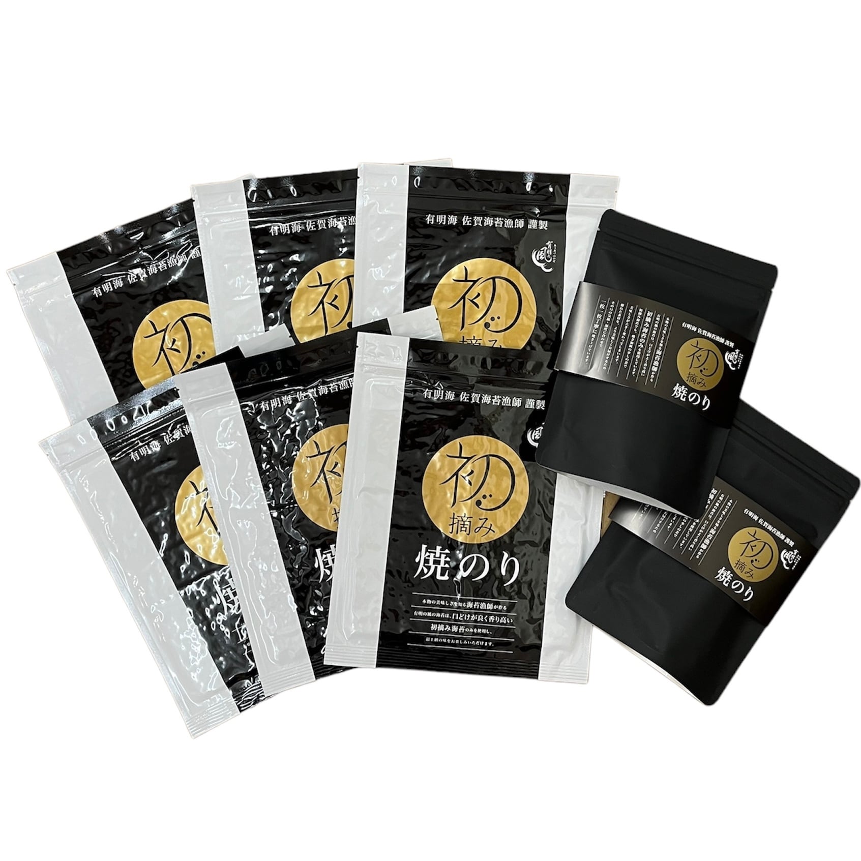 口どけがよく香り高い、初摘み海苔の美味しさそのものを楽しめる焼のり。 深くしっとりとした旨みは漁師の自信の表れです。 口どけが良く香り高い初摘みの佐賀海苔を、一枚一枚愛情こめて焼き上げました。