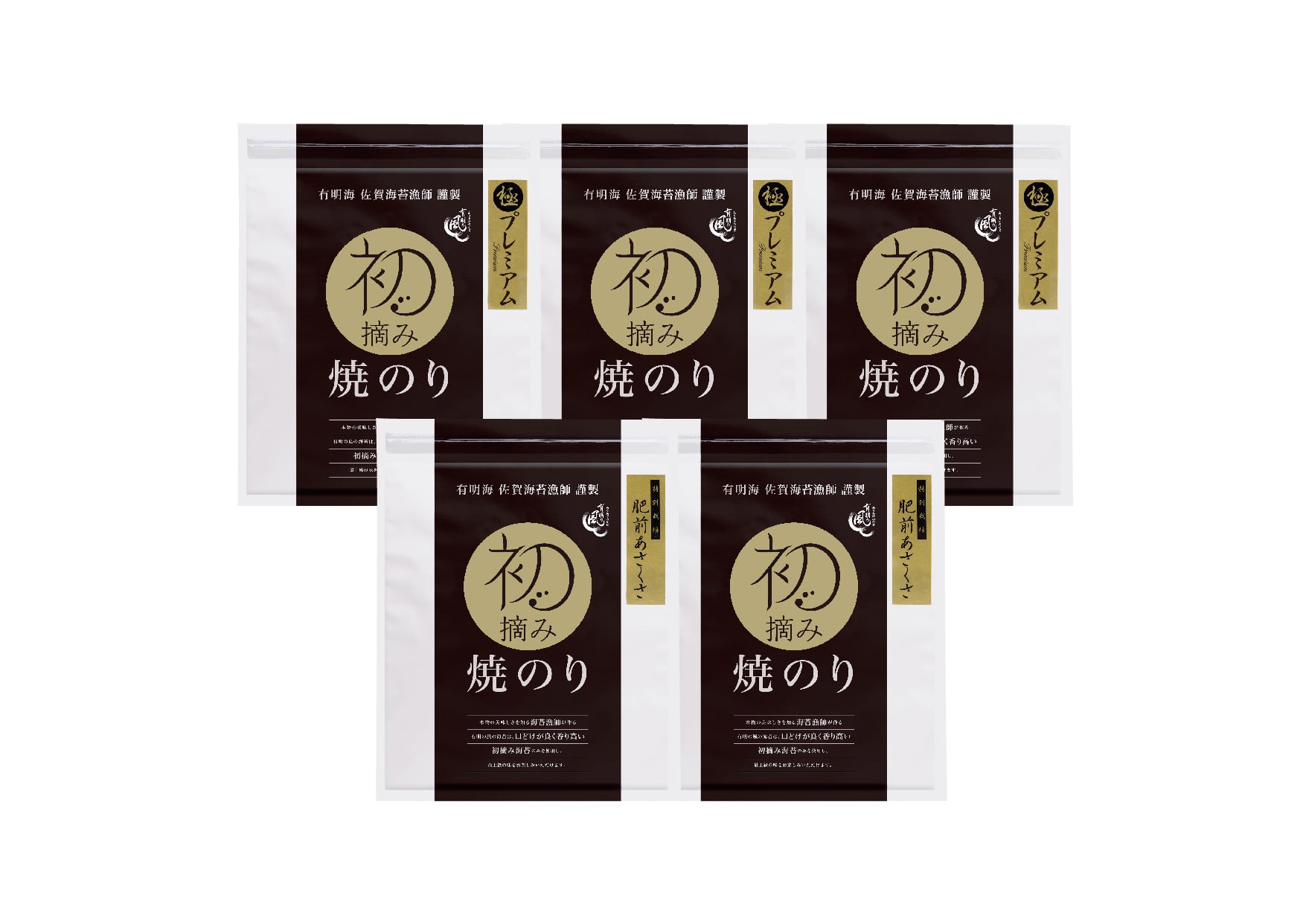 贅沢な味わい『プレミアム焼のり』と、幻の品種アサクサノリ『肥前あさくさ焼のり』をどちらもご堪能頂けるギフトセットです。